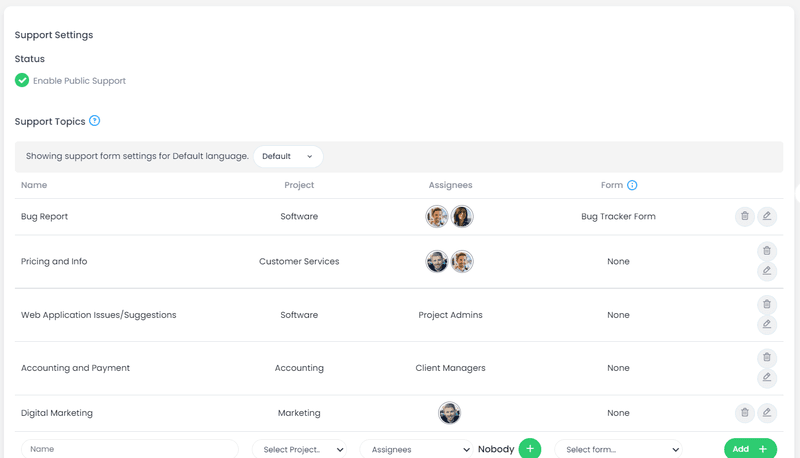 To ensure a smooth user experience, administrators must configure the portal settings to align with their organizational structure. By default, the public support status is turned off. If you want to communicate with your clients via Cubicl Work Management Platform, you must first enable this feature in the settings interface.
